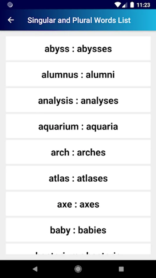 This app has thousands of singular and plural words in English and singular and plural words with easy user interface.