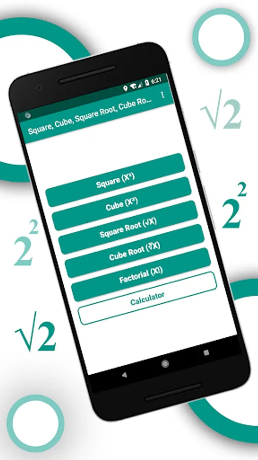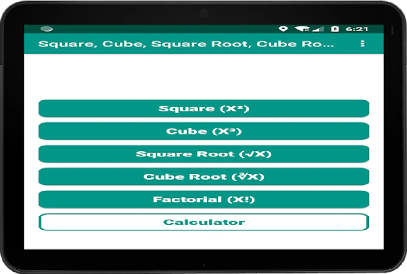This applications includes Square calculator, Cube calculator, Square Root calculator, Cube Root calculator, Factorial calculator