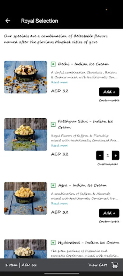 Traditionally sold in the carts of the “kulfiwallahs” in cone shaped moulds and earthern 'matka' pots on the atmospheric streets in the towns of India, KULFILICIOUS brings the ubiquitous regal dessert to the people of the UAE, prepared with that same royal finesse using exotic imperial ingredients such as rose, cardamom, and saffron. So step into the recreated kulfizone to live that nostalgia of childhood once again and return with just one thought - "Simply kulfilicious!!"