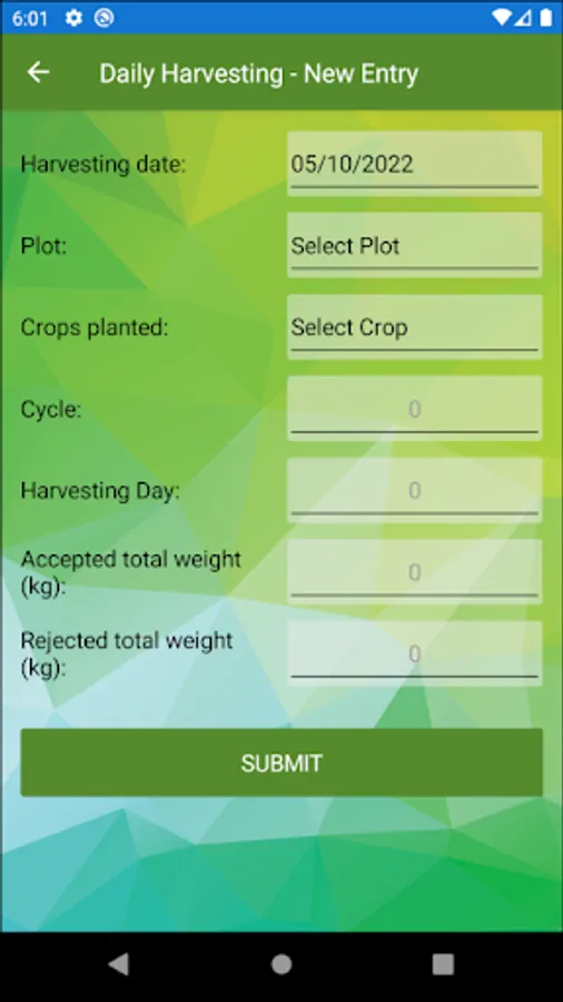 This is a mobile application for recording daily harvest and, pest and disease for agro farm. User can add new form entry, edit/delete existing form entry and send them to KPLANT server. The application is only usable by workers from Kulim (Malaysia) Berhad.