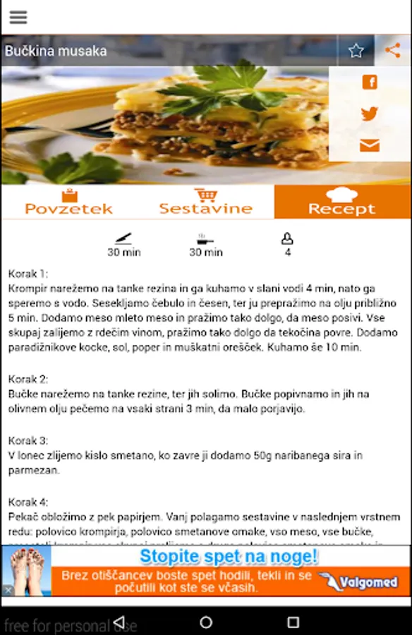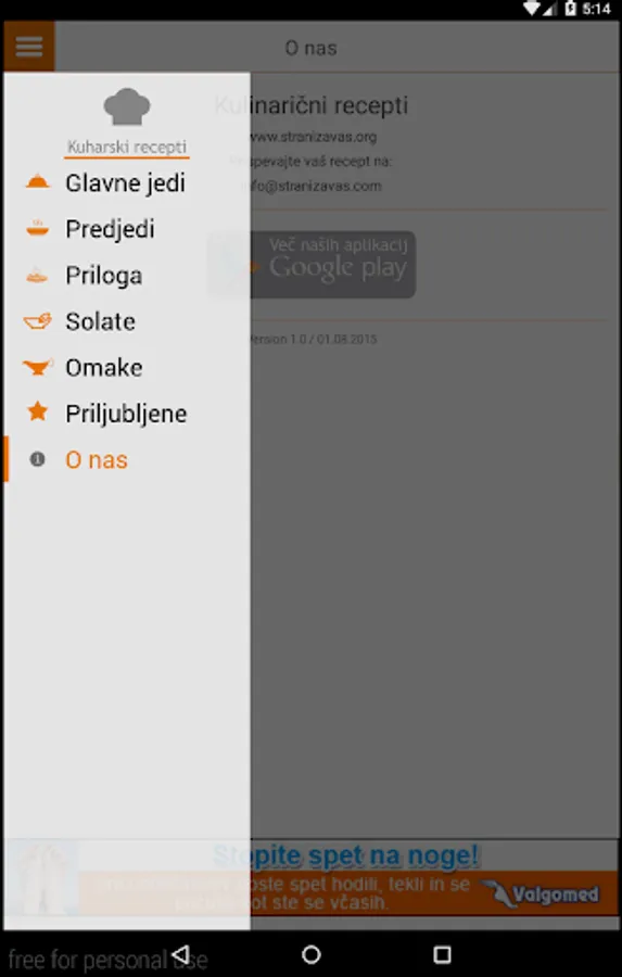 Culinary app with recipes for all tastes. The application contains a newer recipes and homemade dishes. Recipes in the Slovenian language. To use the internet you do not need, so that you can check anywhere in your home is not something cooking chosen dishes. We are trying to be more and more recipes. Pleasant cooking!