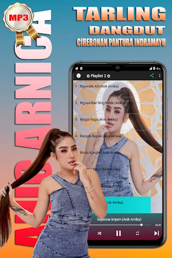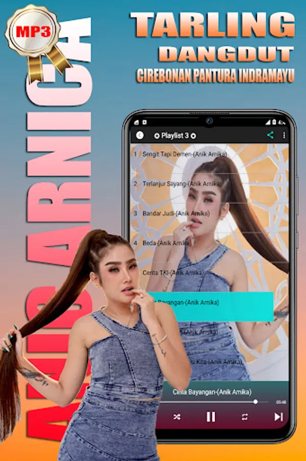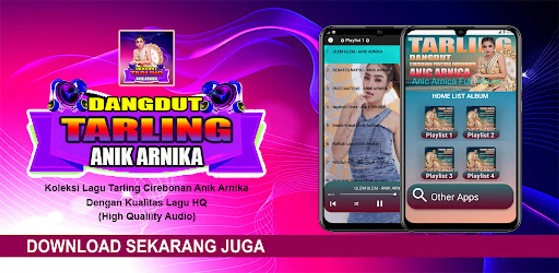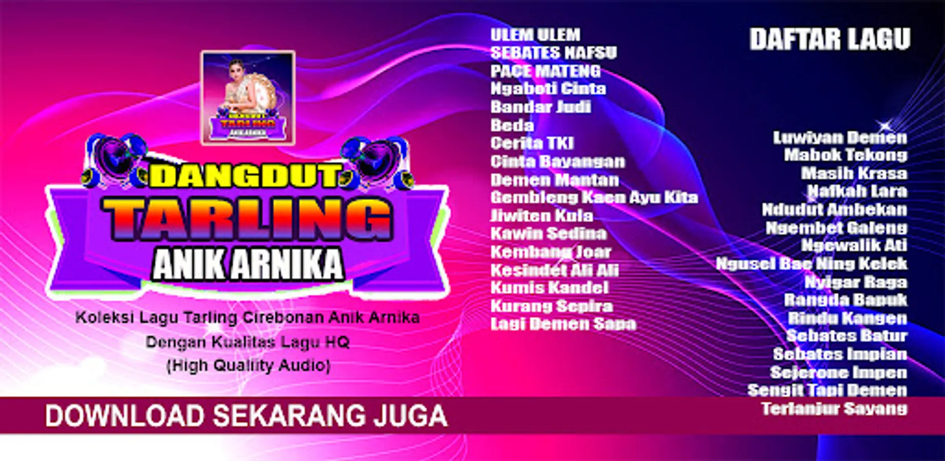 Tarling Anik Arnika Jaya 2023 is an OFFLINE MP3 PLAYER Music application which contains 2023 offline tarling songs and old offline Cirebonan tarling sung by queen tarling pantura ANIK ARNIKA. This full album Cirebonan Tarling song application can be played without an internet connection, the Dangdut Tarling Cirebon Mp3 application is provided with clear audio and the Complete Offline Dangdut Koplo Song application is designed with an attractive appearance. This Latest Dangdut Song application can also be installed on all Android phones.