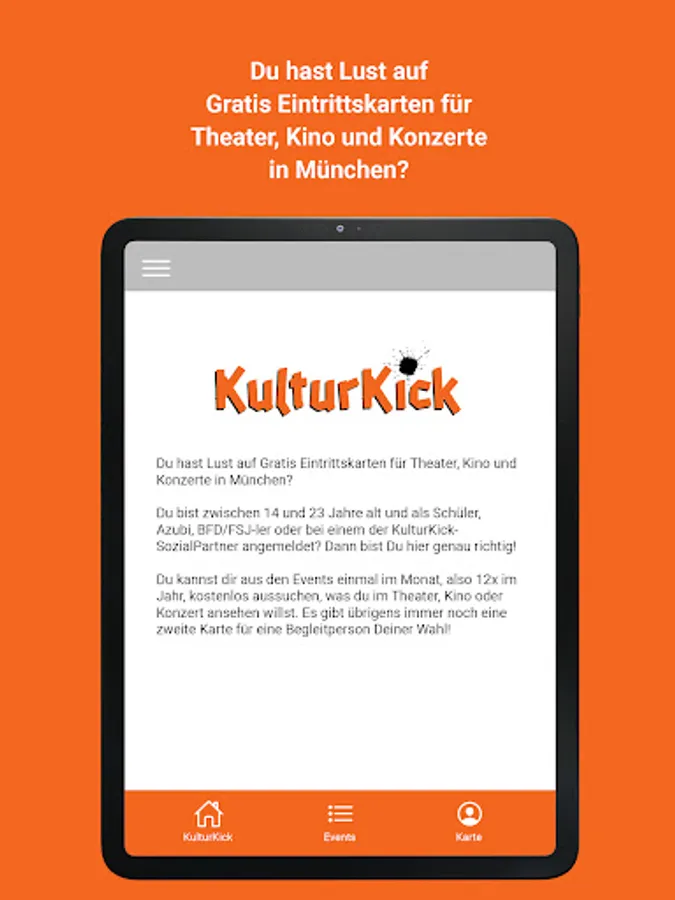 Are you between 14 and 23 years old and registered as a student, trainee or BFD/FSJ student with one of the KulturKick social partners? Then you are exactly right here!