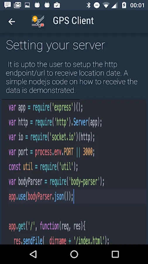 GPS Client helps you send Location and Custom information to a server or URL of your choice as a JSON payload.