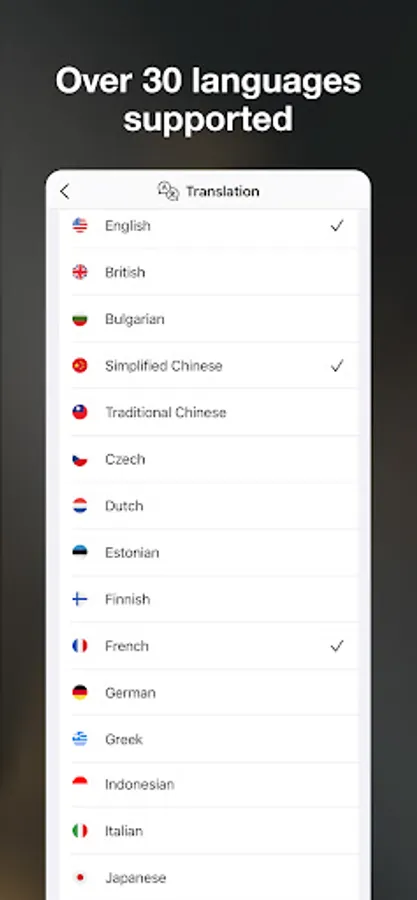 - Over 30 languages supported: Our app covers a wide range of languages, making it easy for you to communicate with anyone in their native language.