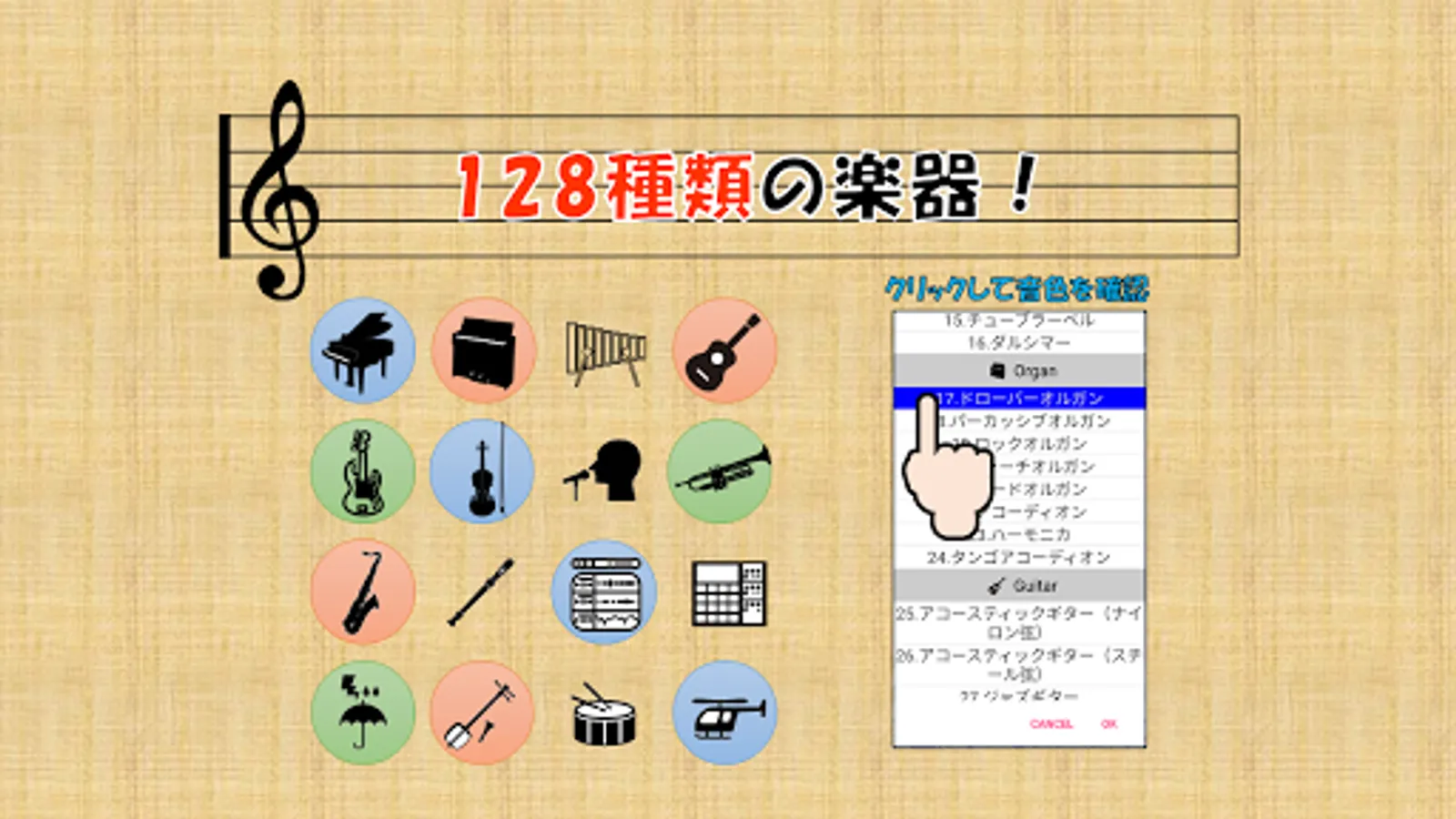 ・ 128 kinds of musical instruments + drum set