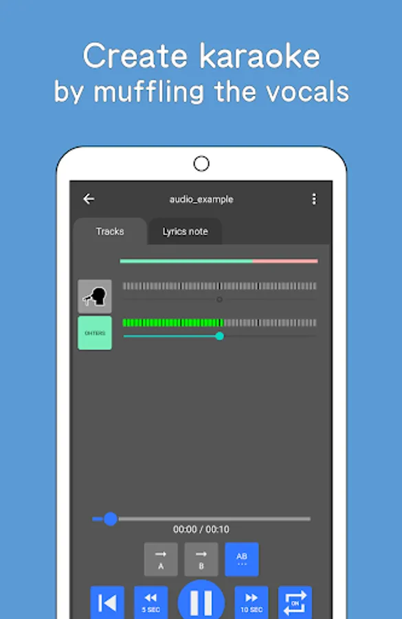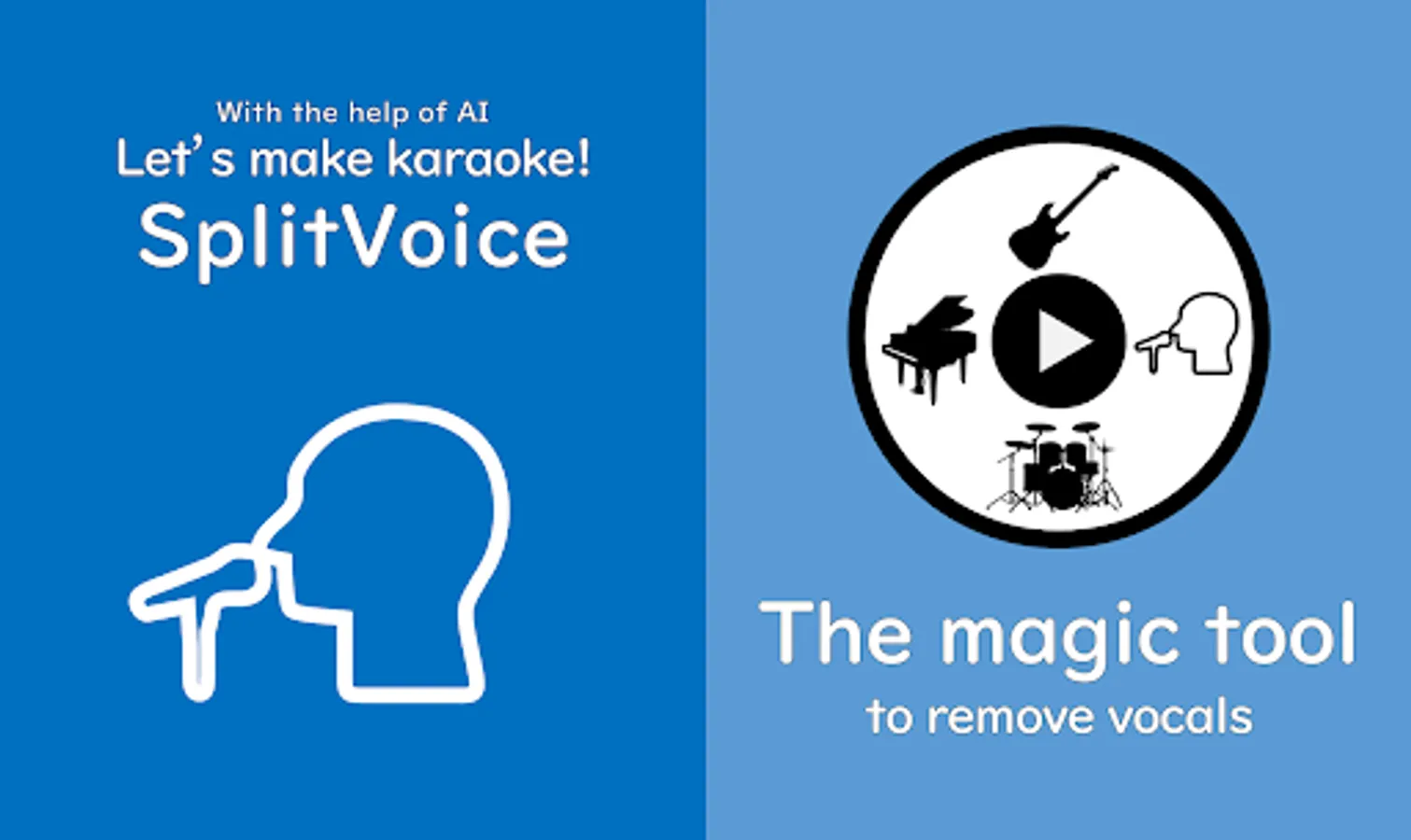 This is a sound source separation app that separates music or video files (mp3, wav, m4a, mp4) in your device into vocal and instrumental track, which can be freely remixed and played back.