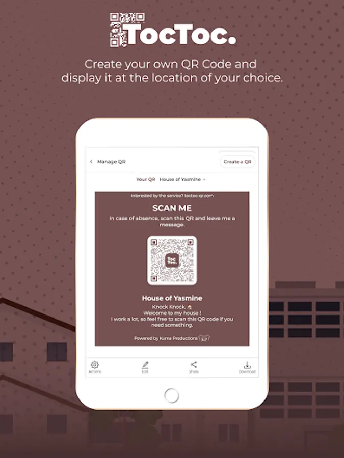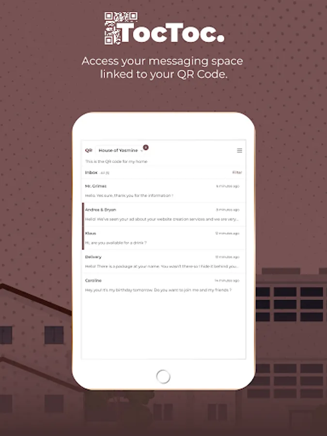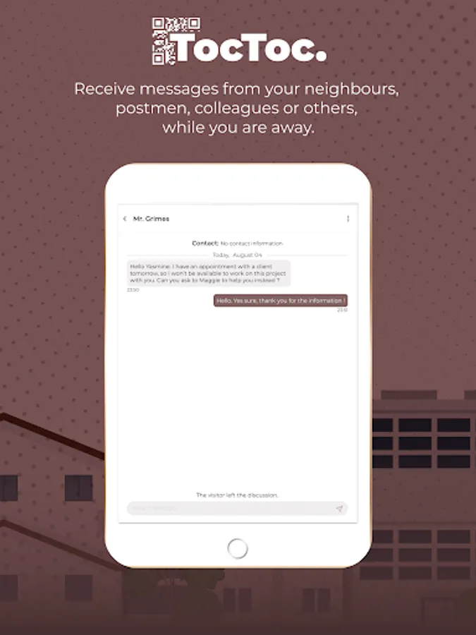 Use TocToc QR to stay informed in case of absence, organize parties, events or simply stay in touch with your loved ones.