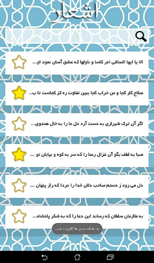 It is known that today in the home of every Iranian, a Hafez court is found. Iranians, according to their old traditions, celebrate with the book of Hafez in the days of national or religious celebrations such as Nowruz on the table of Haft Sin, or Yalda Night. To do this, one of the elders of the family, or one who can read the poem well or someone who believes in the so-called "good" horoscope, first intentionally, that is, he wishes in hope. Then he randomly opens a page from Hafez's book and begins to read aloud. Those who have a religious faith will read the conquerors when they marry and then kiss the book of Hafez, then they will open it with a narration and read their horoscope.