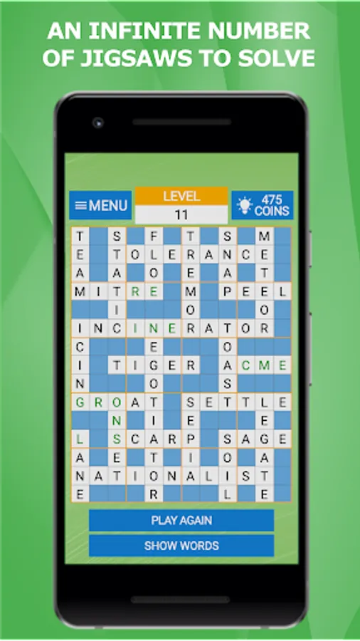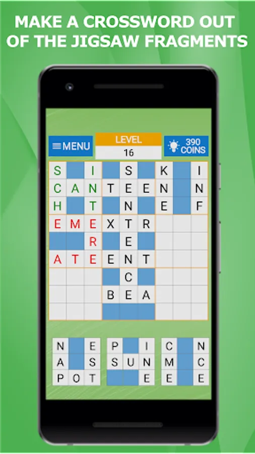 The unique word puzzle “CrossJigsaw” is a crossword puzzle divided into fragments. The object of the game is to restore the original crossword puzzle from the jigsaw’s elements. The game modes differ in crossword puzzle grids (from 9x9 to 15x15) and number of fragments (from 9 to 20). The game has an unlimited number of jigsaws. If the jigsaw turned out to be very intricate, you can use the hints. This game is free and you can play it without the internet that is required only to view the definitions of words