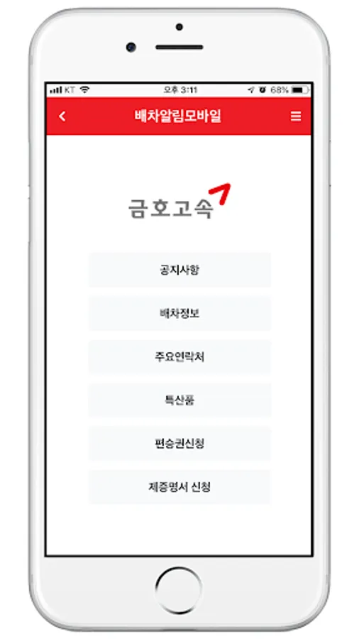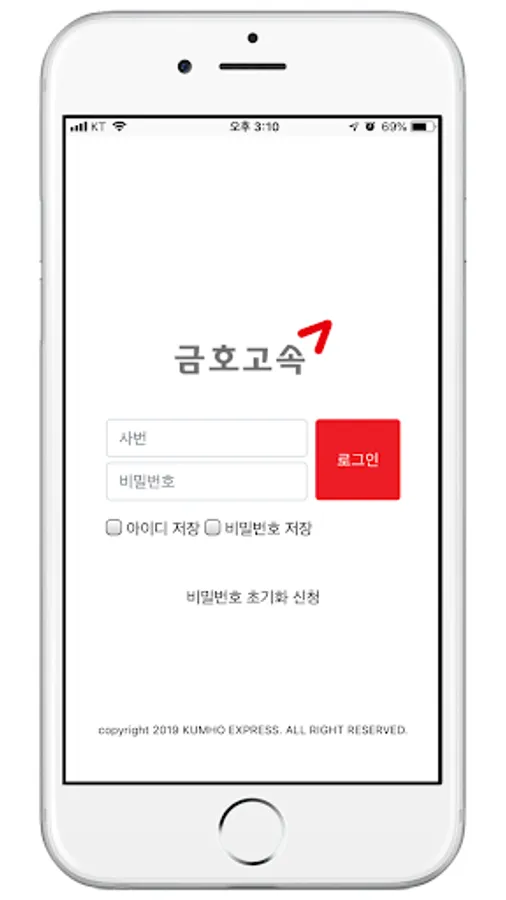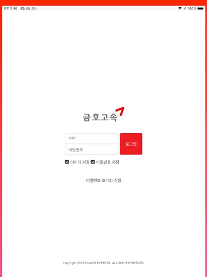 Kumho high-speed employee mobile app. Only relevant employees can use it.