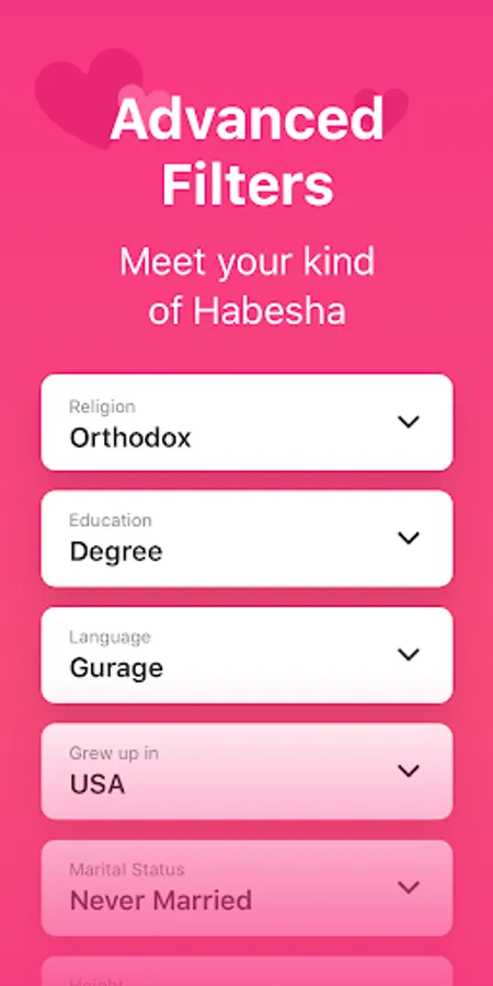 Like someone? Start chatting. Advanced filters help you get matched with your kind of habesha.