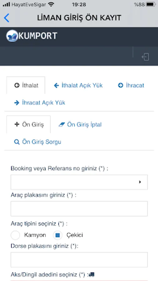 • Through Kumport Compass application, you can create, query and cancel all your pregate records requiring terminal entry.