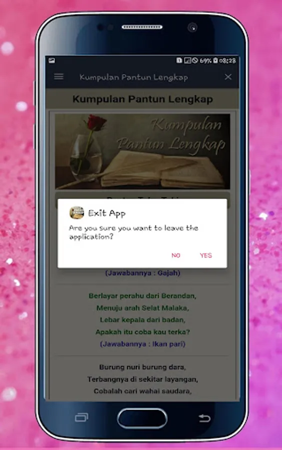 Alhamdulillah, thanks to Allah S.W.T, finally we PonPon Media have successfully completed the application Complete Pantun Collection. Pantun is a poem or literary work of Indonesia, especially Malay, which bound by the rules. Pantun itself is an expression of feelings or thoughts that are arranged using words in such a way that it is interesting to hear or read. Pantun can also be entertaining or reprimand.
