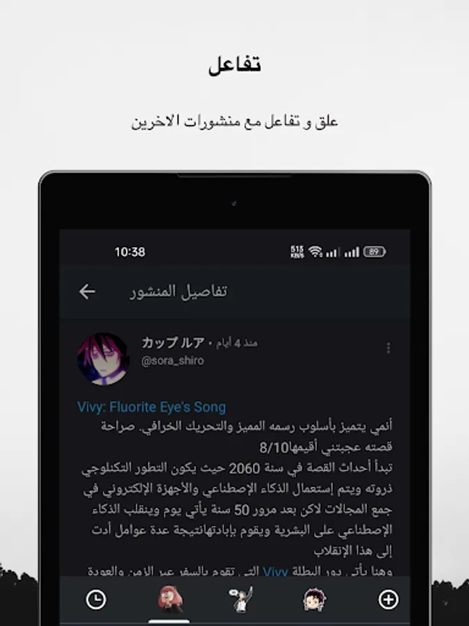 Kunaiu is the first Arabic application to track anime and communicate, you will find everything new about anime.