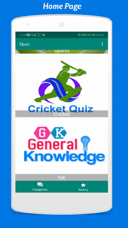 Using the app the user can play quiz and test their knowledge in wide range of categories