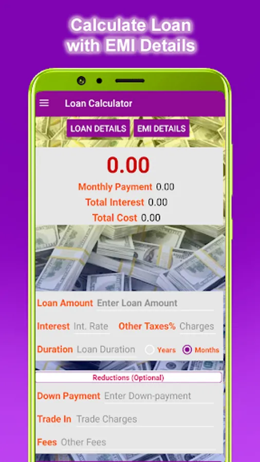 ** Calculate any kind of loan with EMI details.