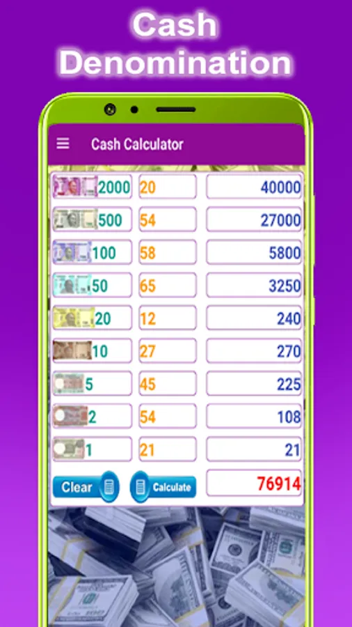 ** Calculate Cash denomination.