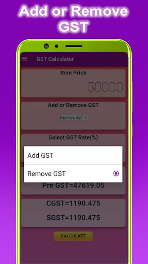 ** GST add and Remove Option.