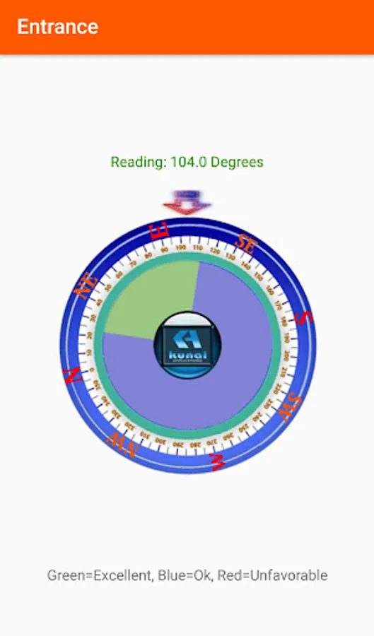 ** The green color in the compass indicates favorable direction for the chose place and the red color indicates unfavorable direction and blue color indicates neutral space (neither favorable nor unfavorable).