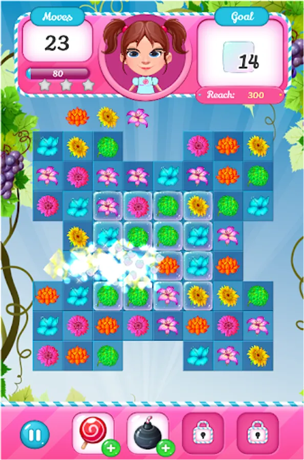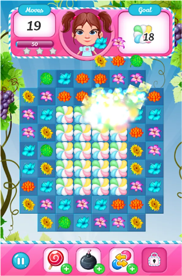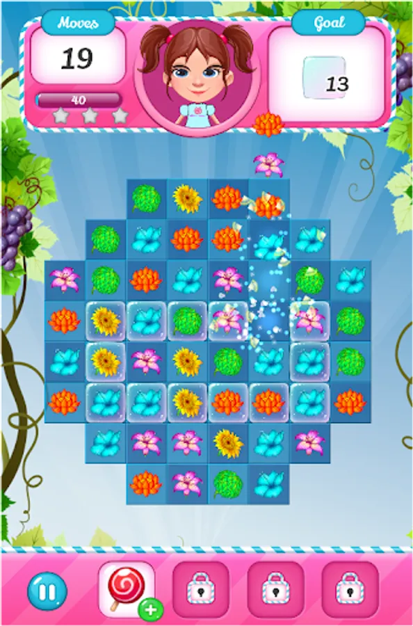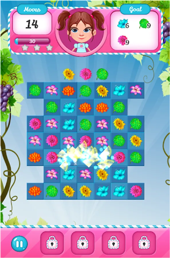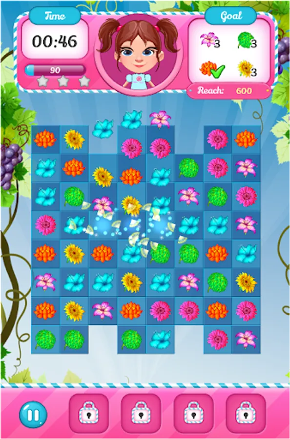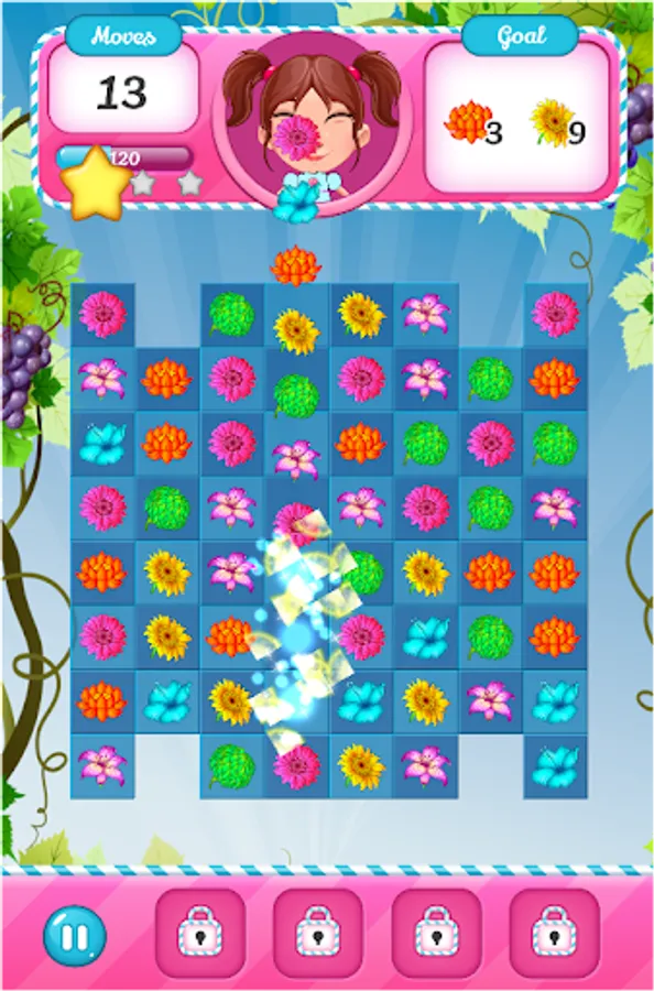 - Match at least 3 Flower treats of the same type to burst and win points.
