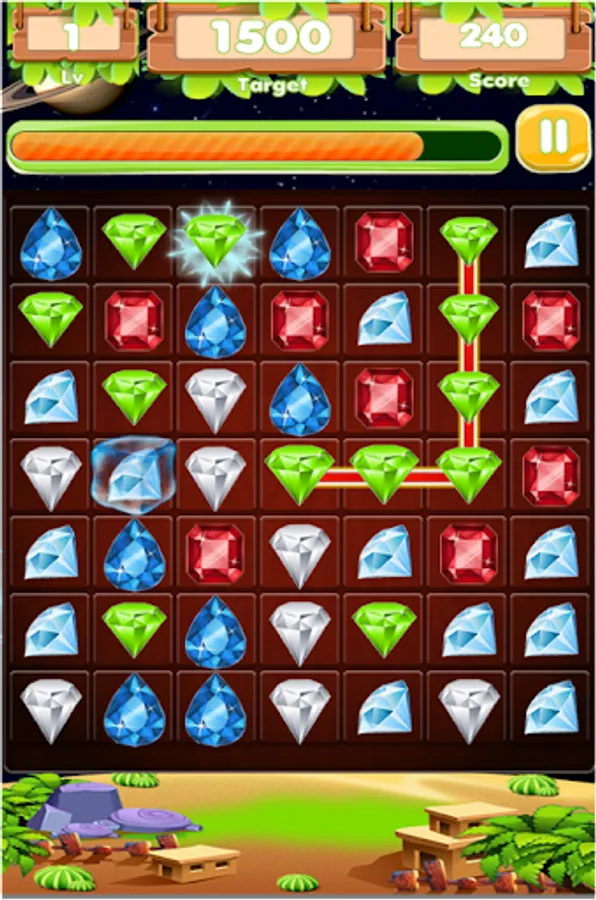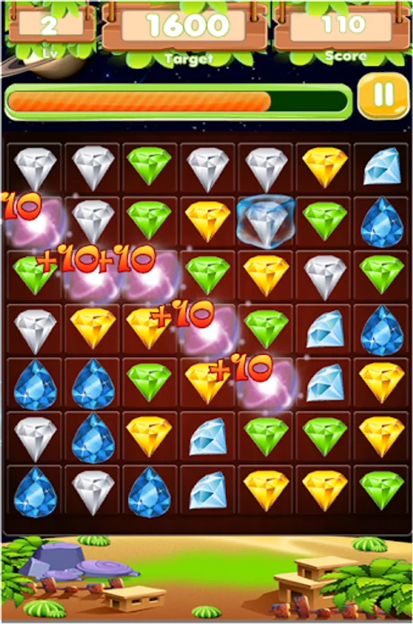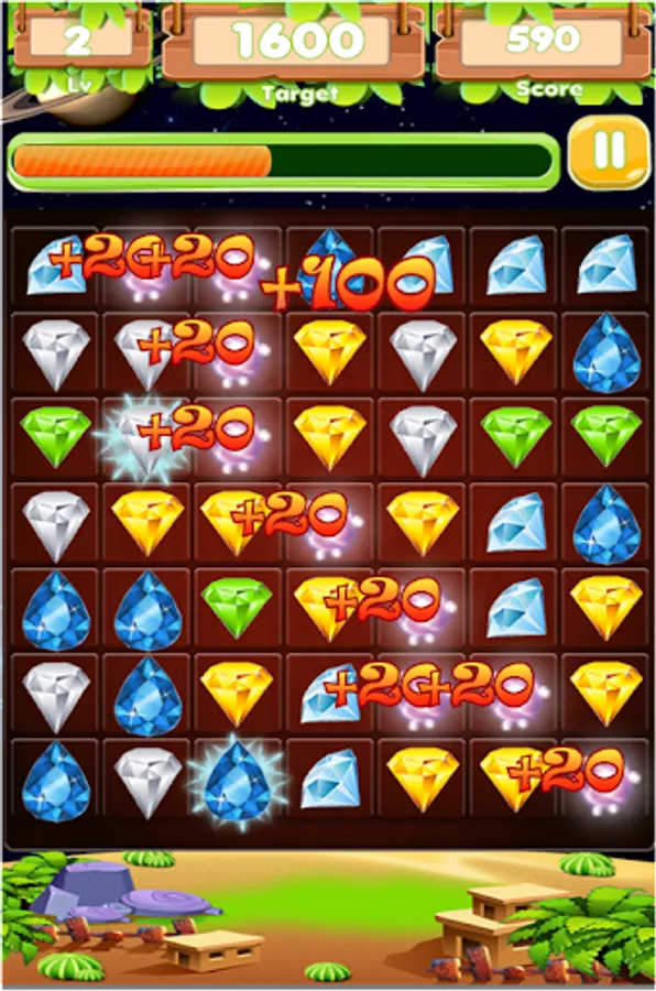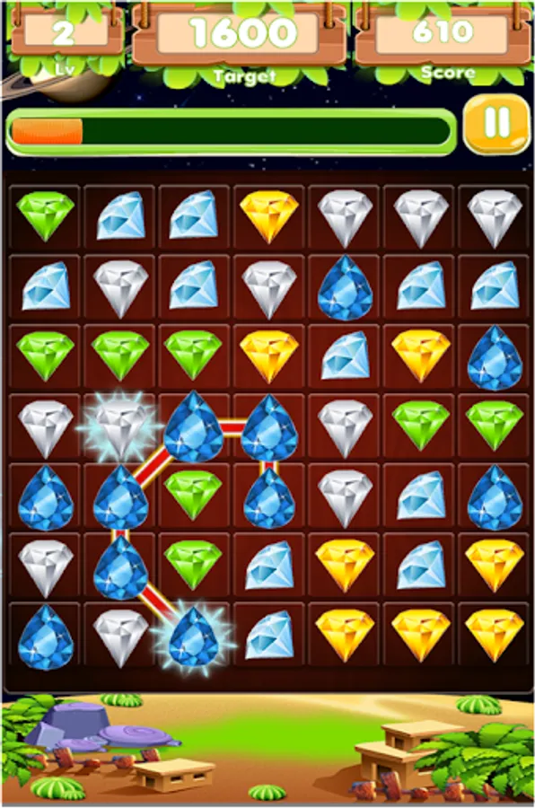 - Connect to match 2 or more gems of the same to be crushed.