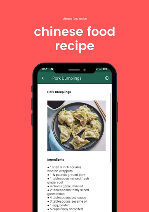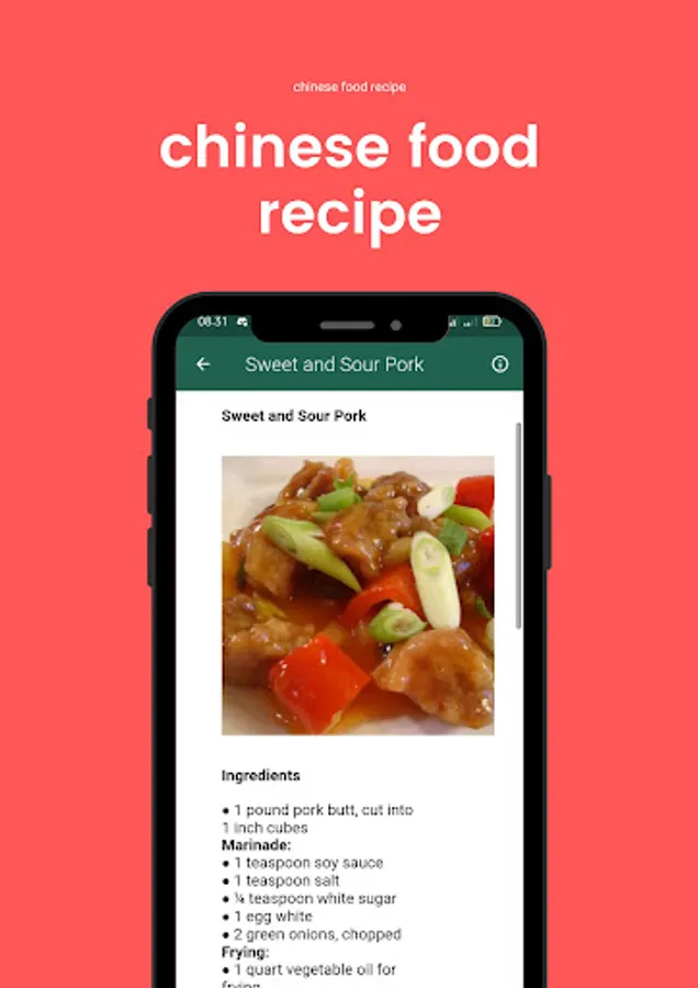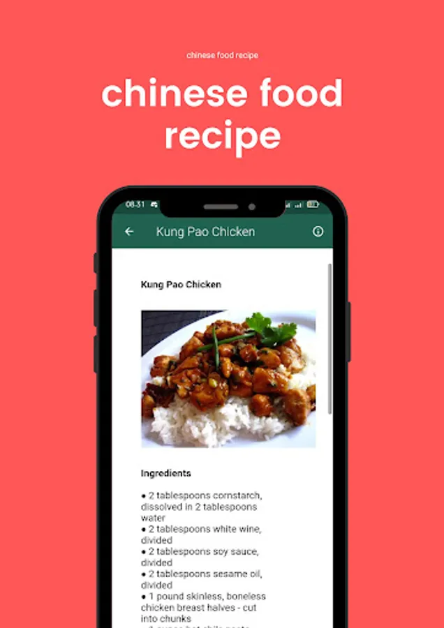 The Chinese food recipe application is an application that provides a collection of Chinese food recipes that can help you find delicious and authentic Chinese food ideas. This app is especially useful for those who love to cook and are looking for inspiration to cook a wider variety of Chinese food.