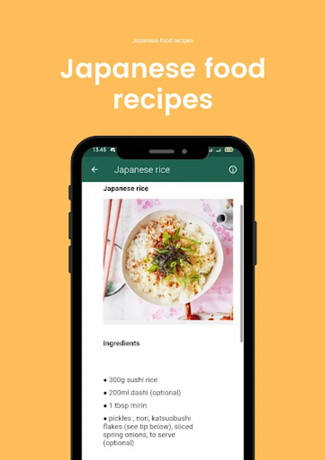 The Japanese Food Recipe Application Presents Various Japanese Food Recipes consisting of various types of food, such as Sushi, Ramen, Teriyaki, and others. Each recipe comes with clear cooking steps, so you can easily make Japanese food at home. This application is also equipped with a search feature that makes it easy for you to find Japanese food recipes to your liking.