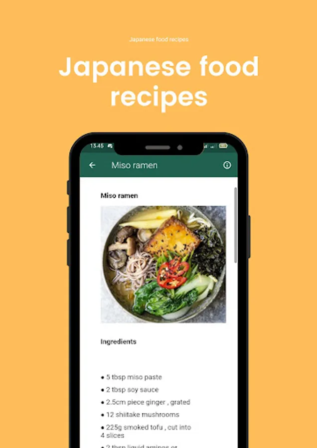 Japanese food recipe app offers lots of quick and light recipes. It includes recipes for Japanese sweet buns, sushi rolls, ramen udon noodles, sweet rice balls, tempura, okonomiyaki, tonkatsu, shabu sauce, miso soup, sukiyaki & desserts.