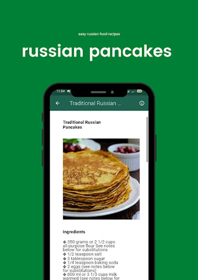 Every Russian food recipe has easy step by step instructions with a photo. Get more free easy recipes in our Russian recipe app. Unlike other recipe apps, Russian recipes can be used offline. This makes our free offline Russian recipe app for Android a perfect fit for your kitchen.
