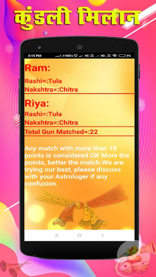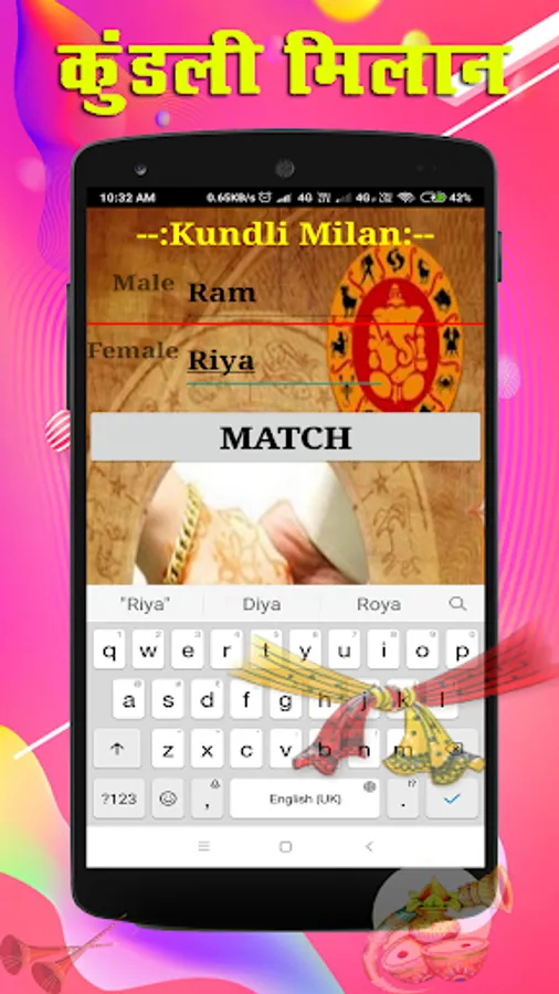 This kundali matching app for marriage based on Vedic astrology. Kundali Match is built on Ashtakuta method. In Ashtakuta Kundali milan, eight different personality characteristics of the couple are compared and assigned certain points based on compatibility match. The final result depends on the summation of points assigned to all personality aspects.