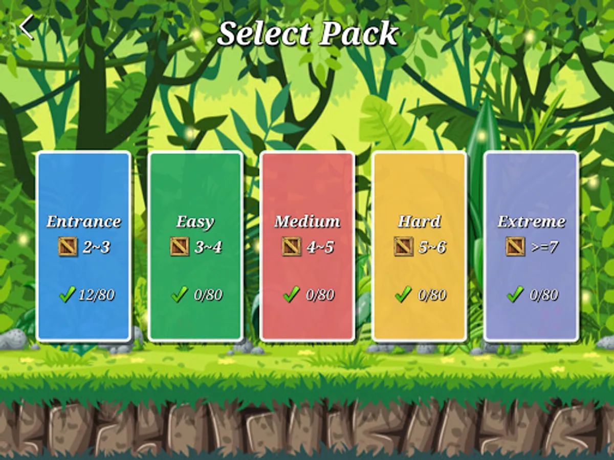 - The levels divided into five different packs by boxes numbers. You can select the degree of level difficulty easily.