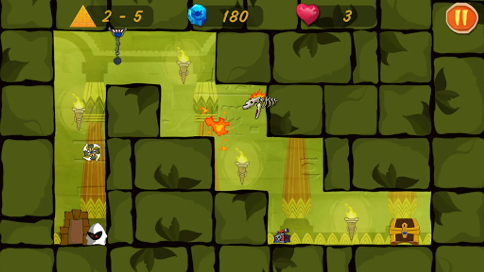 There are 90 challenging levels with a lot of traps and enemies.