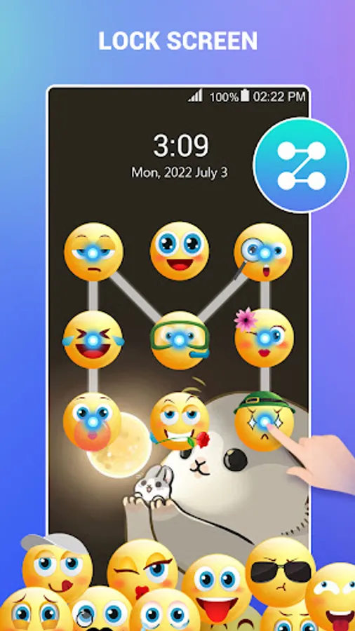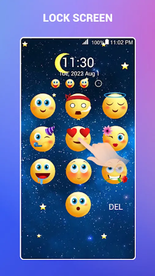 Change your default lock screen with emoji lock screen and increase your privacy security with smiley.