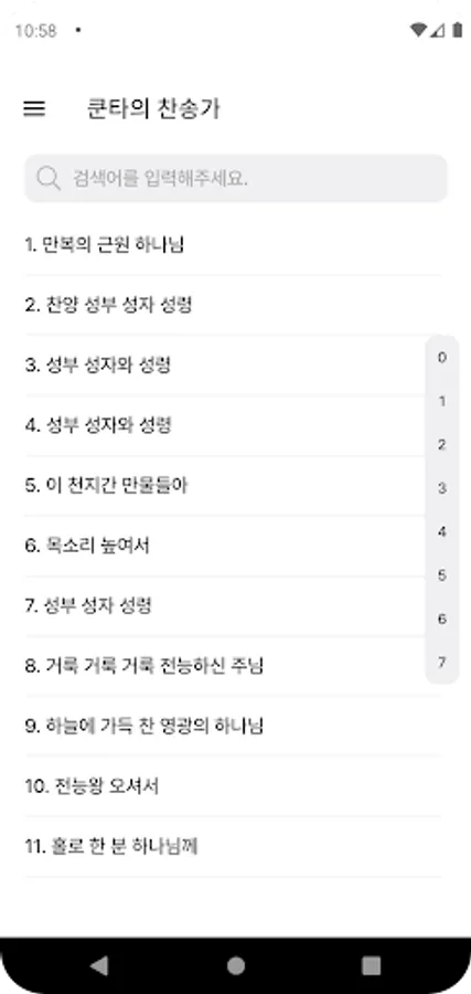 You can easily find the hymn you want to listen to with the search function.