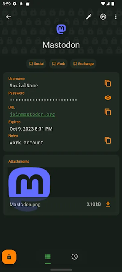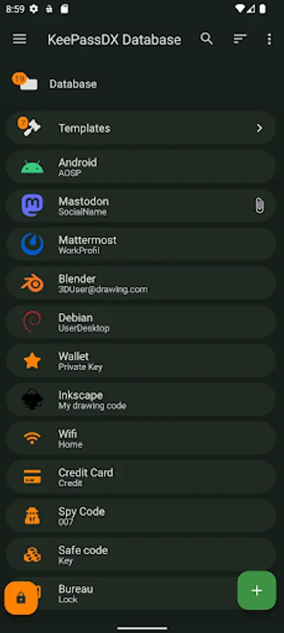 Multi-format KeePass password manager, the app allows saving and using passwords, keys and digital identities in a secure way, by integrating the Android design standards.