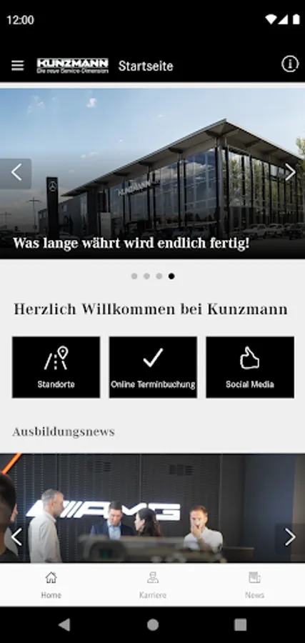 You can quickly and easily make appointments, search for vehicles, browse our online shop or call up information on current events and news from the Kunzmann world. Don't miss out on anything! The area of careers at Kunzmann was also taken into account in the app.