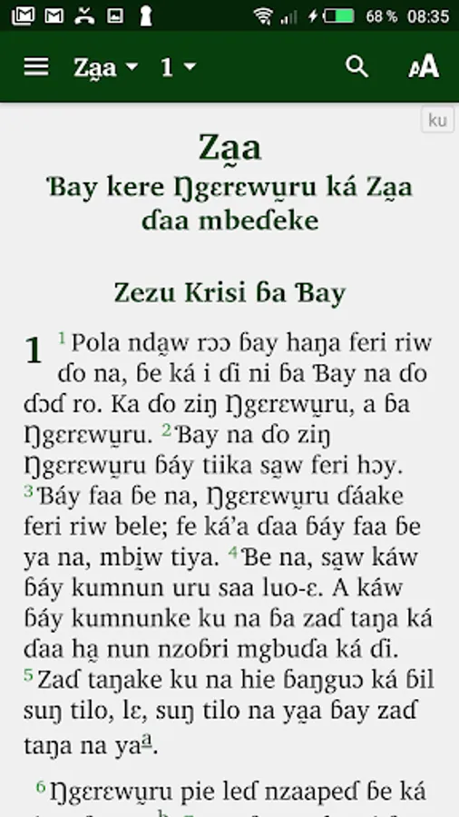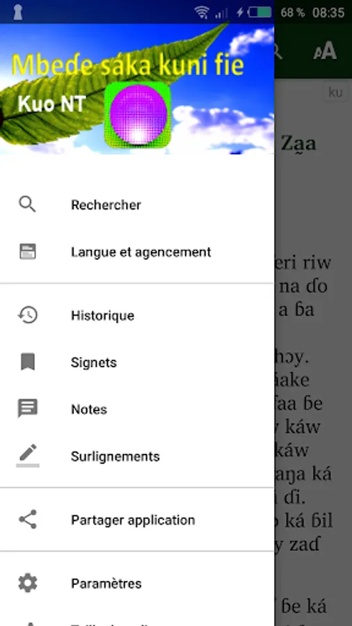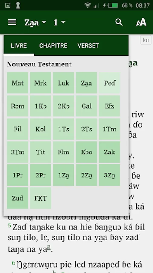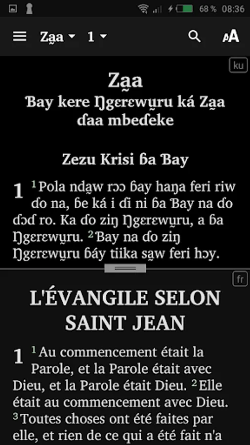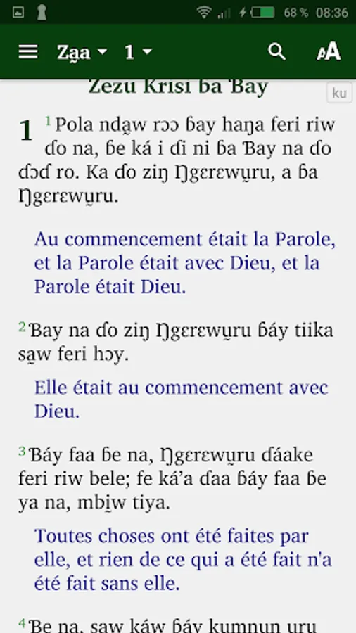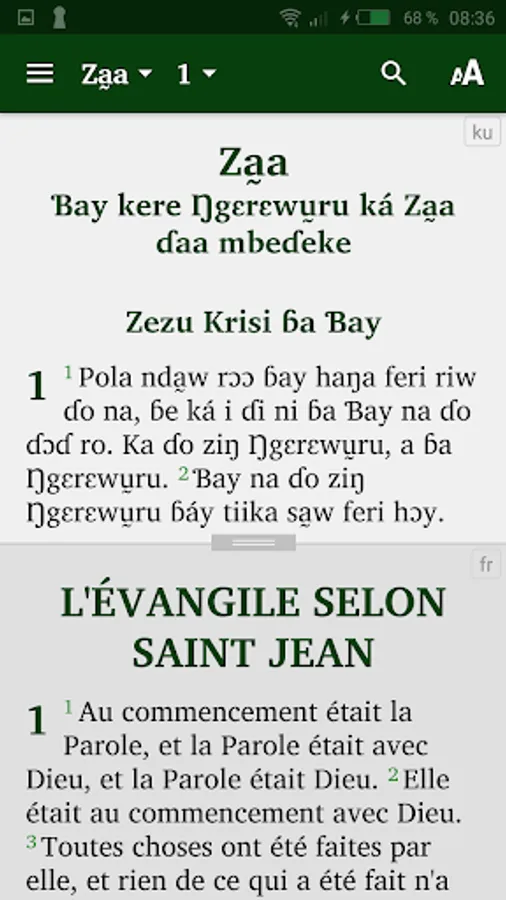 This application presents you the New Testament translated into the Kuo language spoken in Chad.
