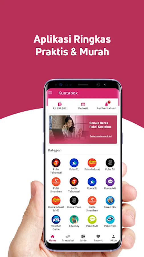 Kuotabox is one of the cheapest digital product purchase and payment applications in Indonesia. As a digital product provider, our role is to make purchases and payments simpler with a single application system, which means that in one application you can make purchases and payments easily, because we have provided various digital products such as All Operator credit, PLN Tokens, Online Game Vouchers, PPOB Bills, etc.
