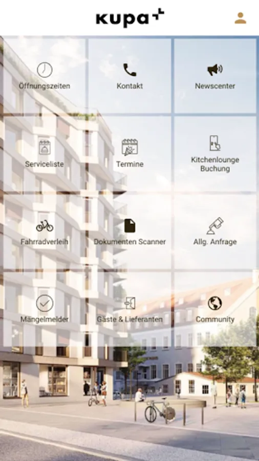 The resident app for the Kupa residential area in Munich. A modern management platform to make living more modern and to perfectly integrate the classic concierge service into dynamic life models. Users will be able to book services worldwide and organize their apartment and life together with the concierge from the airport or from the couch.
