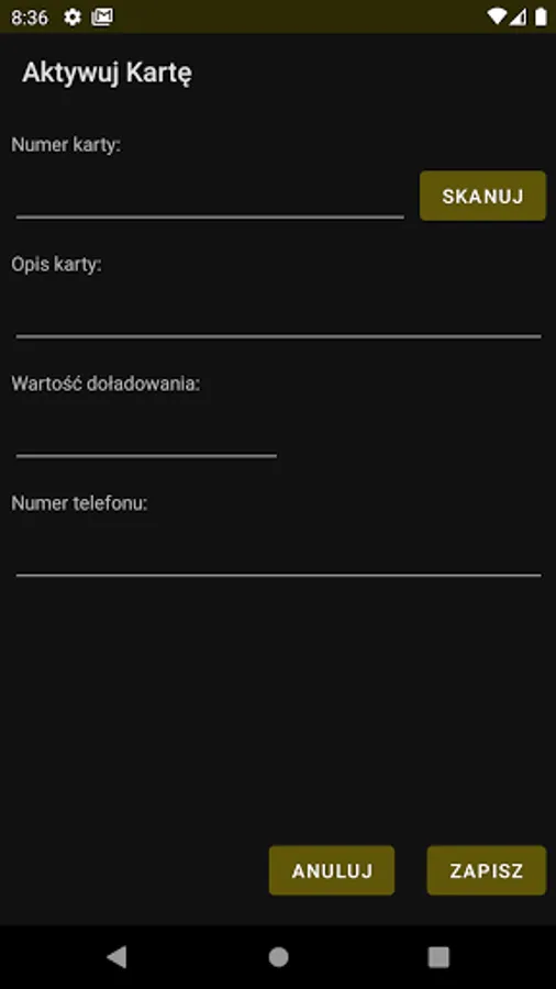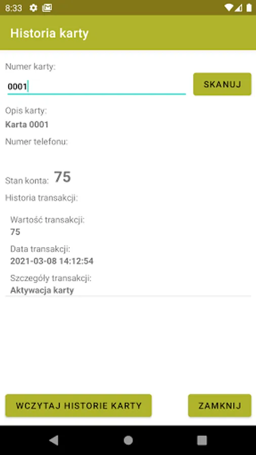 With this application you can manage gift cards in your store. You can set the card balance, register transactions (purchases), check and report the balance on the card, send the customer SMS notifications after the transaction. The application will handle any card with a barcode or QR code.