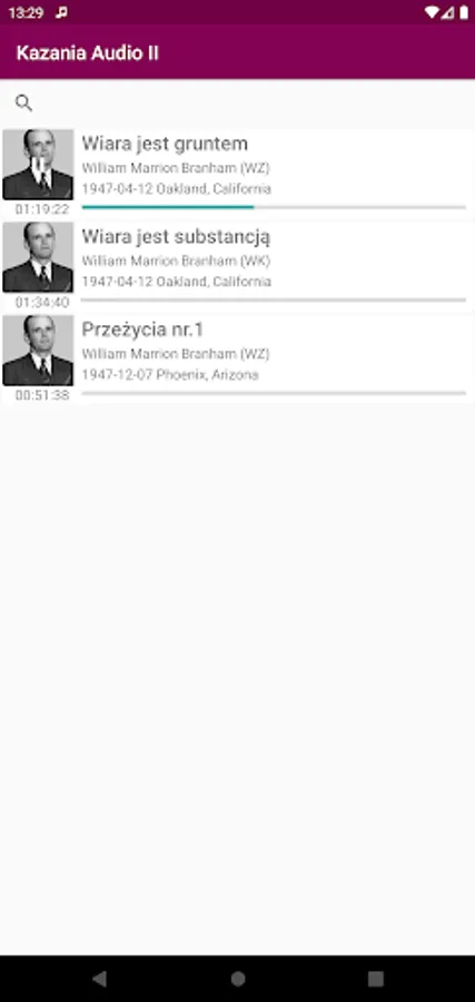 The application plays audio files online. There are over 500 audio files in the database. You can sort sermons by date, title, and teacher.
