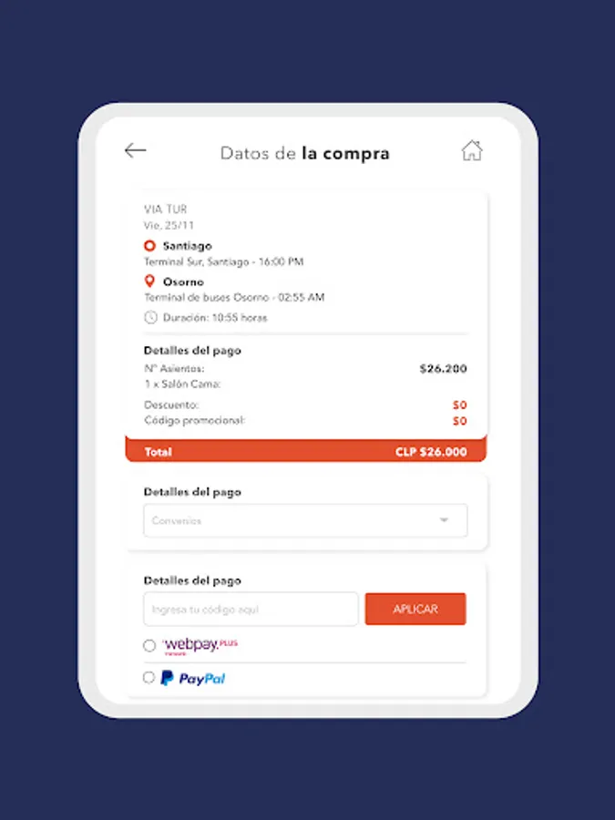 ✓ Enter the origin and destination of your trip, as well as the date you want to travel. You can buy the return in the same search, in case you need it.