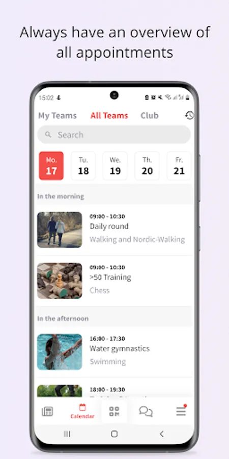Calendar: Now you always know where you have to be when new team- or club-appointments are scheduled and which club event is scheduled next. Keep track of your timetable, join new teams, and see what else is going on in your club.
