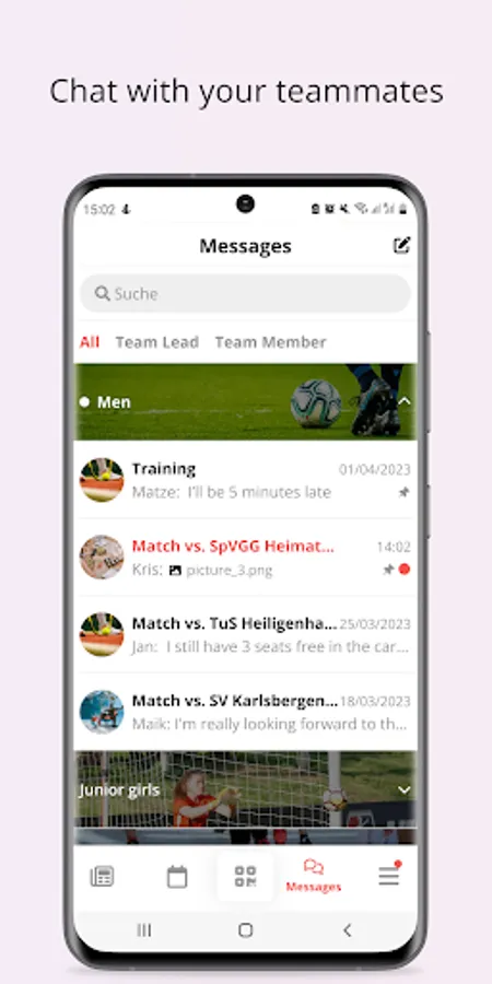 If you are a coach, put an end to last-minute e-mails and phone calls - the latest team schedules and team chat are available directly in the app.