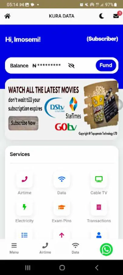 Kura Data offers an array of convenient and swift payment services, including Data, Airtime, Electricity Bill, and Cable Subscription. Our platform aims to simplify your daily transactions, making them easier and faster than ever before.