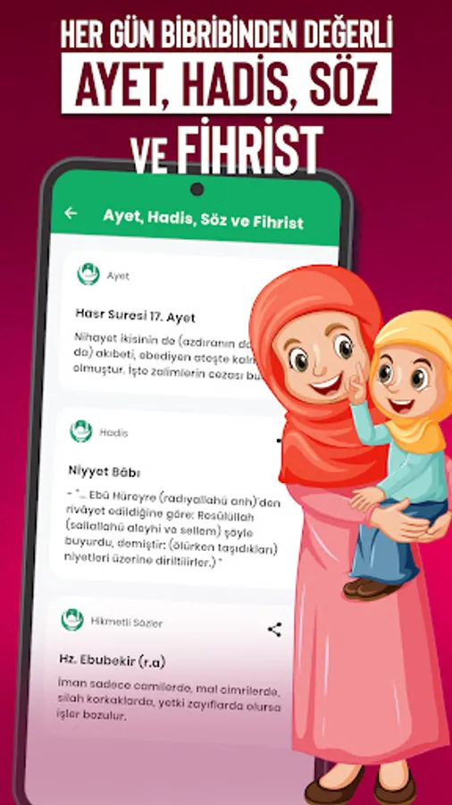 14. Verses, Hadiths, prayers, fiqh information and religious information will be conveyed at certain times of the day.