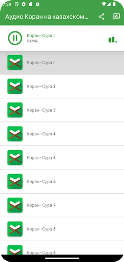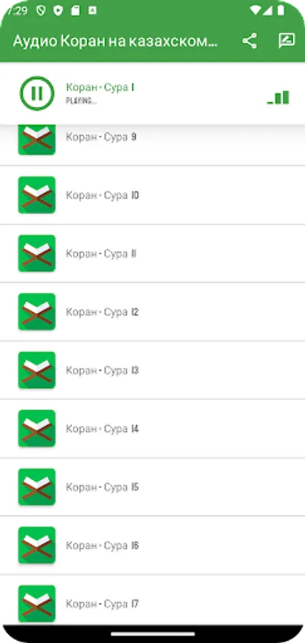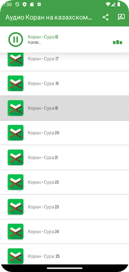 тіліндегі аудио Құран қазақша интернеттің жұмыс істеуін талап етеді.
