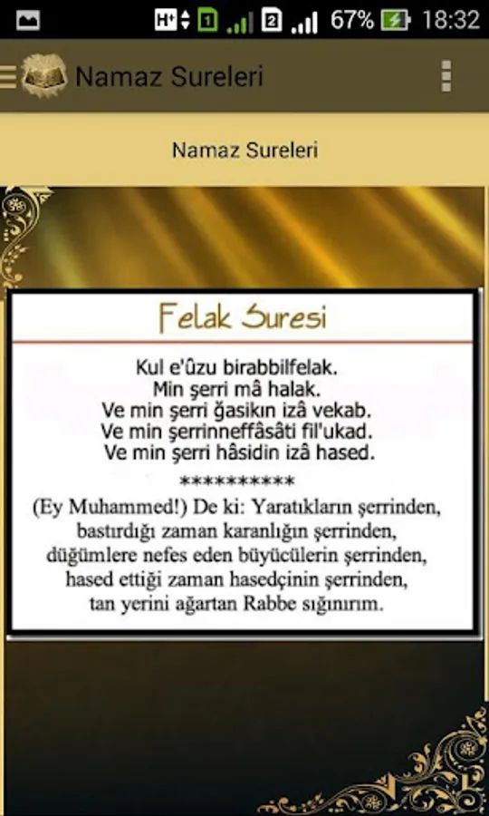 * Quran Section: In this section, you can read the Quran in Turkish Meal. Meal meal is used as the head of religious affairs.