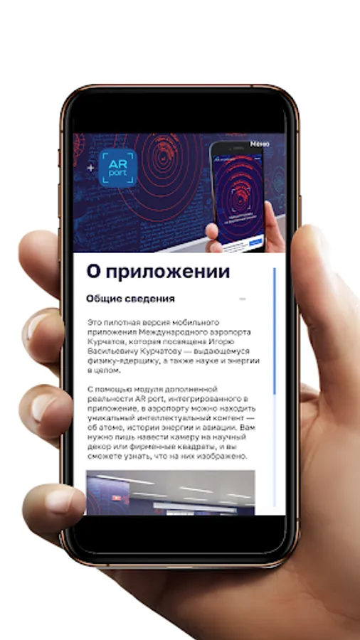 - scan the markers placed at the Chelyabinsk airport using the AR port augmented reality module and find unique intellectual content - about the atom, the history of energy and aviation;